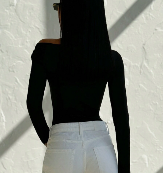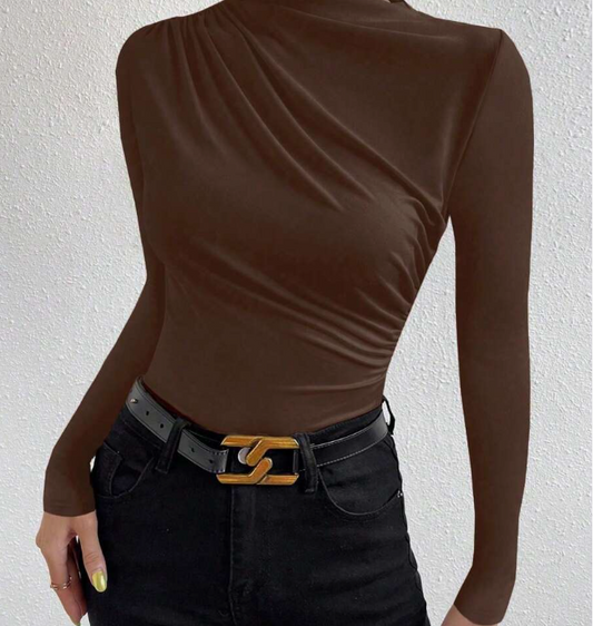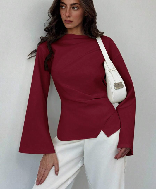 חולצת עטיפה עם שרוולים ארוכים בצבע חלק