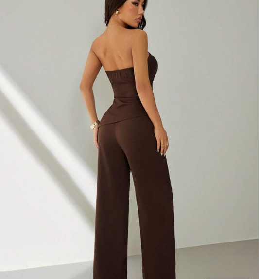 מכנסיים רחבים ארוגים בצבע משמש, ל