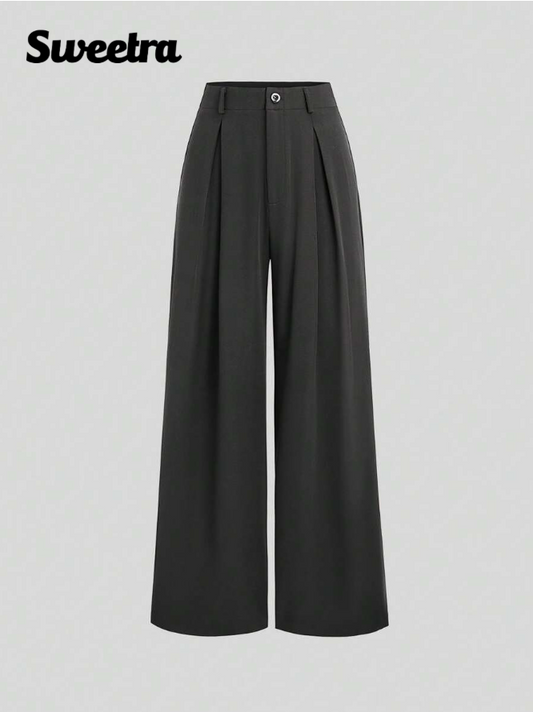 מכנסי חליפה וינטג' בגזרה גבוהה לנשים