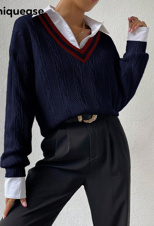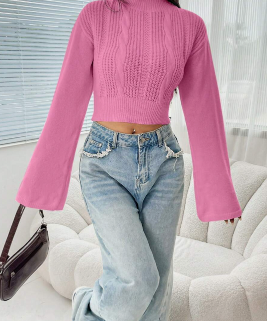 סוודר סרוג בכבלים לנשים, צווארון עומד ושרוולים מתרחבים