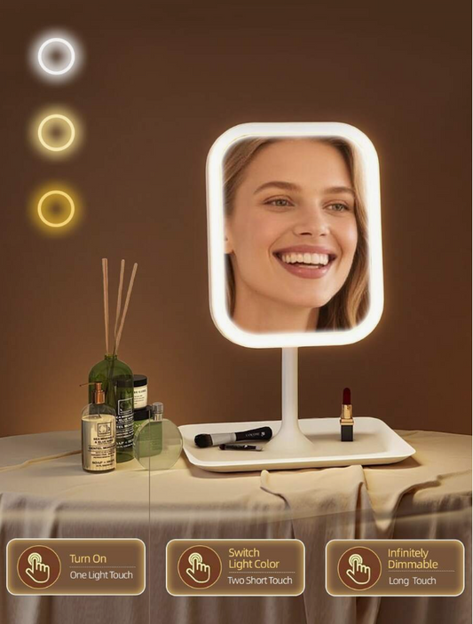 מראת איפור עם חיישן מגע, 3 מצבי תאורה צבעוניים