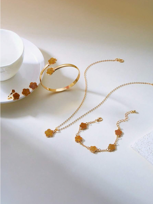 סט תכשיטים של 6 יחידות בסגנון תלתן
