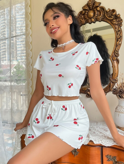 סט פיג'מה פרחוני שני חלקים