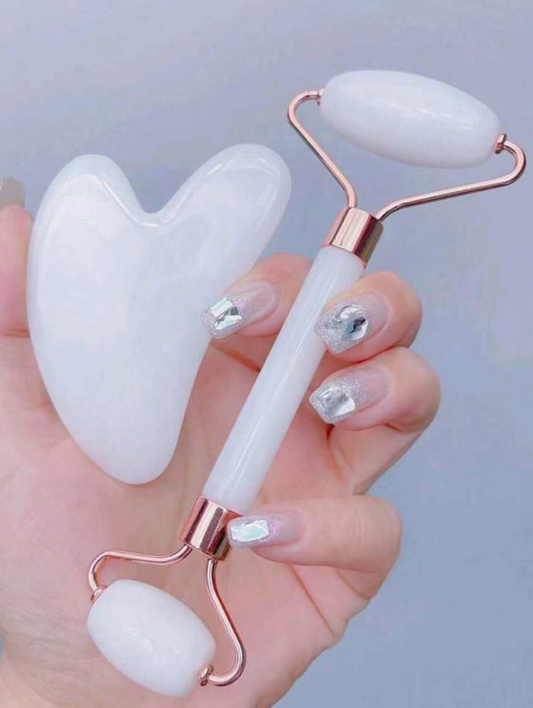 סט כלי עיסוי יופי לפנים 2 יחידות, עם מכשיר עיסוי רולר ולוח גירוד, לגוף ולגב, ורוד/לבן