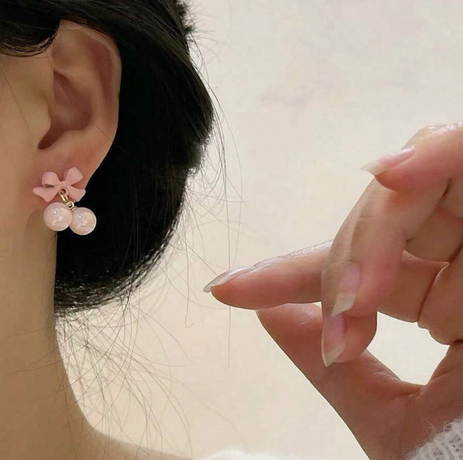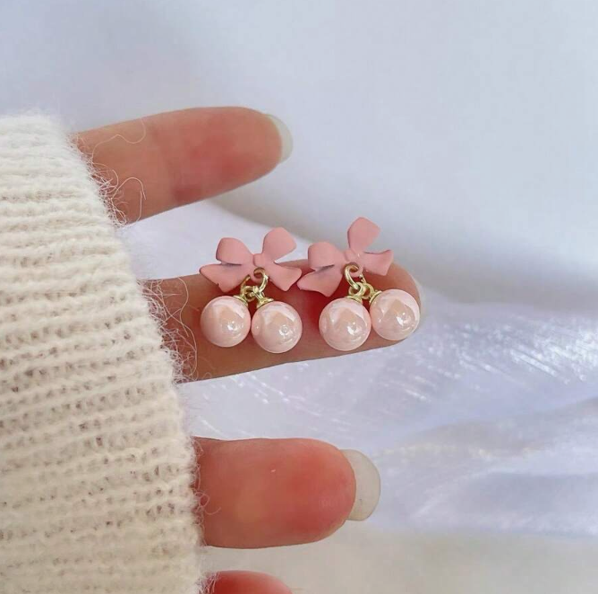 חדש מתוק ילדה אביב קיץ קטן טרי ורוד קשת פנינה חרוזים עגילי פיות חמוד כסף מחט עגילי ילדה