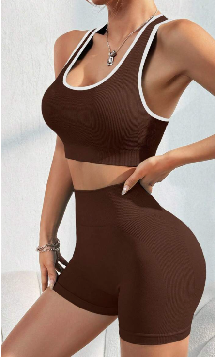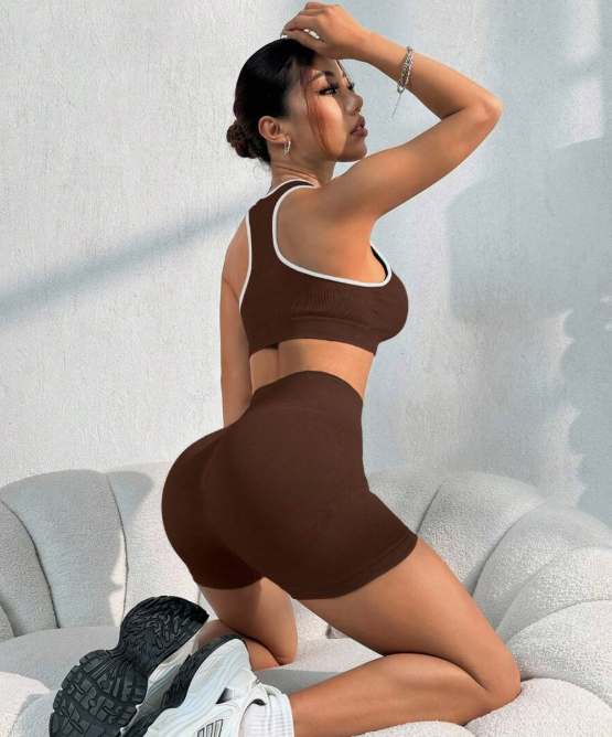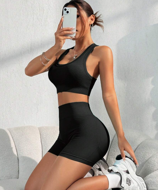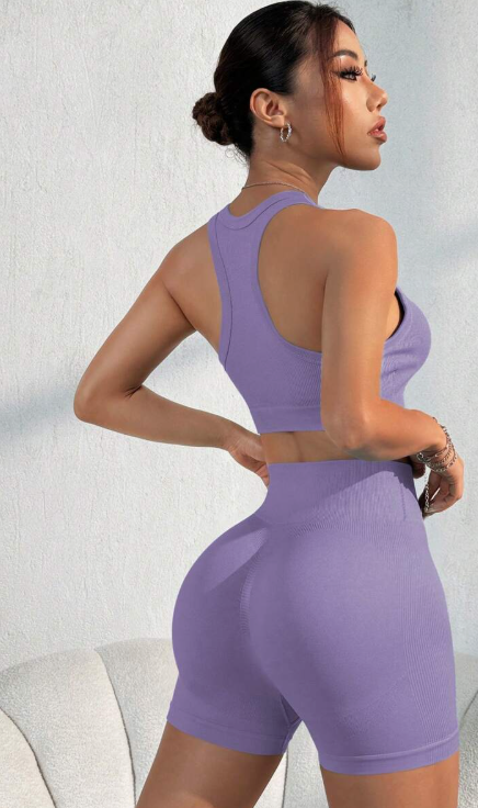 סט פשוט בצבע אחיד עם כתפיות רחבות ומכנסיים קצרים בצבע אחיד, סט אימונים לנשים