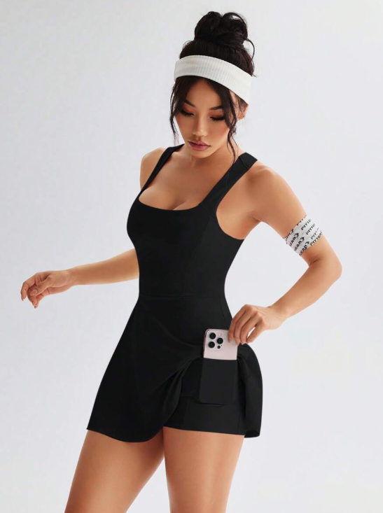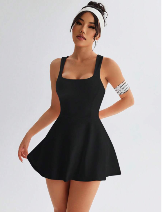 שמלת ספורט קז'ואלית ללא שרוולים בצבע אחיד