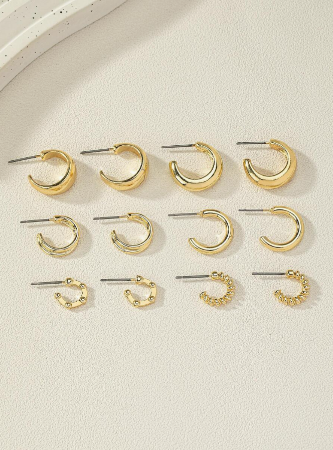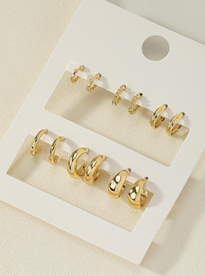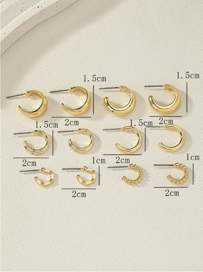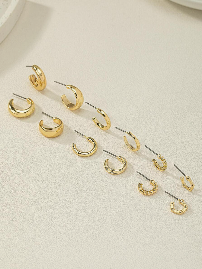 6 זוגות/סט עגילי חישוק אופנתיים מסגסוגת אבץ בעיצוב אביב לנשים לקישוט יומיומי