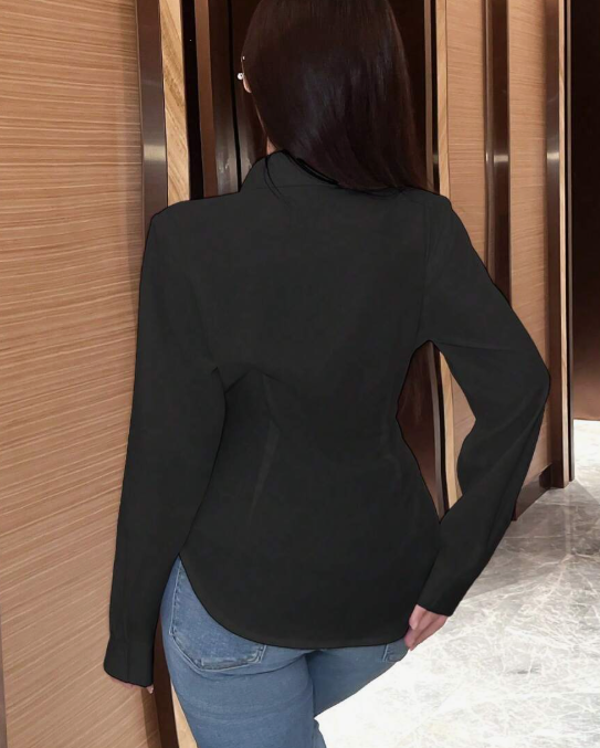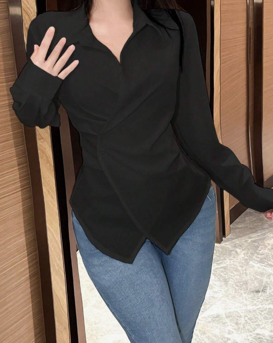 חולצת עטיפה עם שרוולים ארוכים בצבע חלק