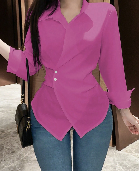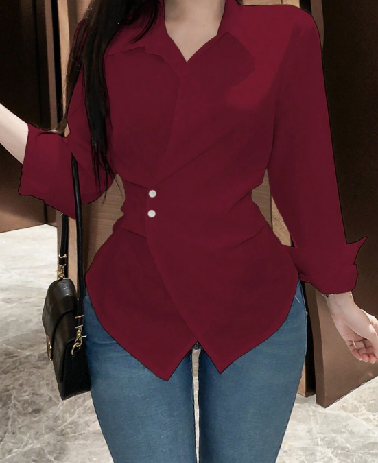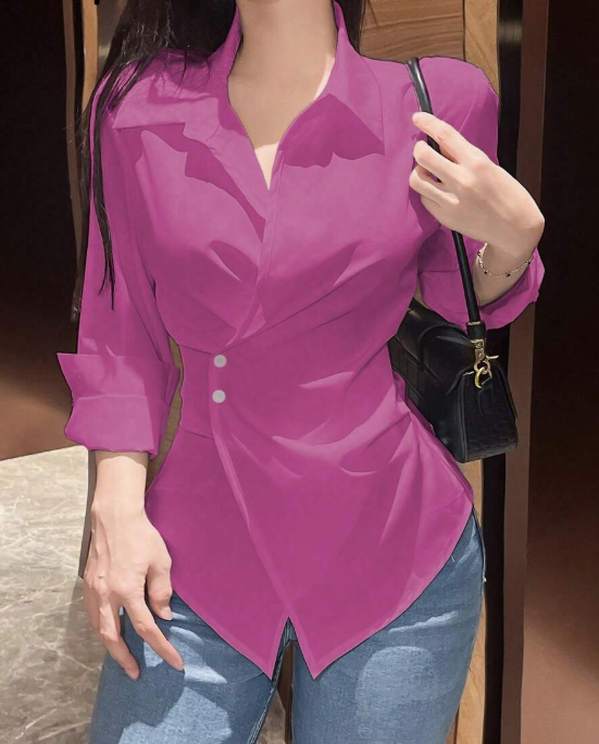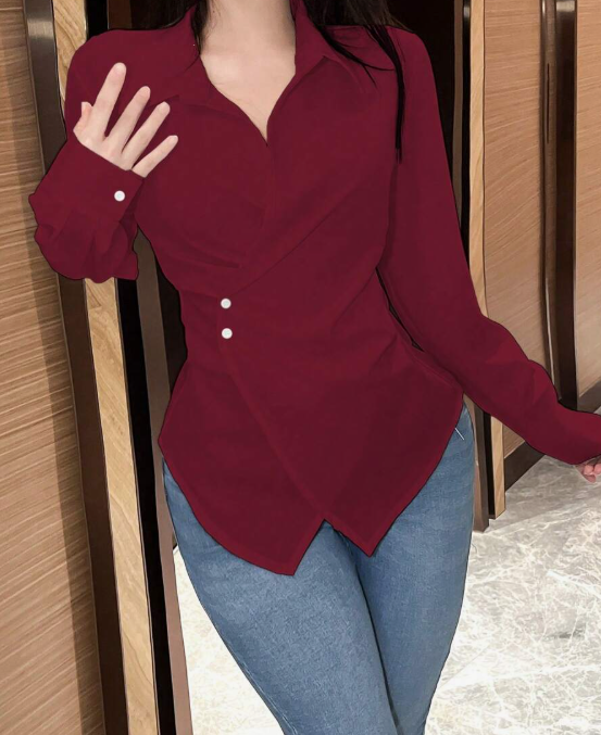 חולצת עטיפה עם שרוולים ארוכים בצבע חלק לנשים של Unity, חולצת אביב סתיו לנשים, חולצות עם שרוולים ארוכים בד סתיו לנשים