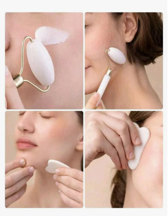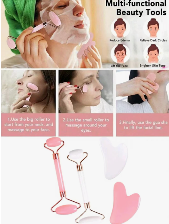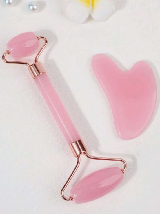 סט כלי עיסוי יופי לפנים 2 יחידות, עם מכשיר עיסוי רולר ולוח גירוד, לגוף ולגב, ורוד/לבן
