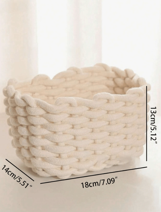 קופסת אחסון איפור לבנה ארוגה ביד מחבל עבה