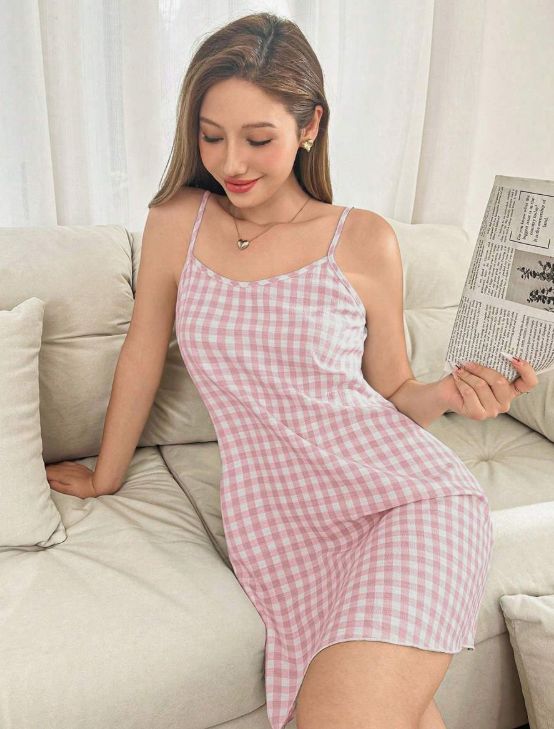 שמלת לילה קז'ואלית משובצת עם הדפס משבצות לנשים של Dream Adore